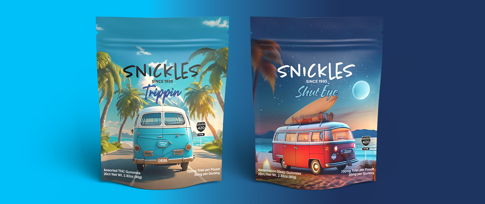 Dive into the assorted flavor Trippin gummies for a mellow, relaxing journey that melts away stress and promotes a serene atmosphere.